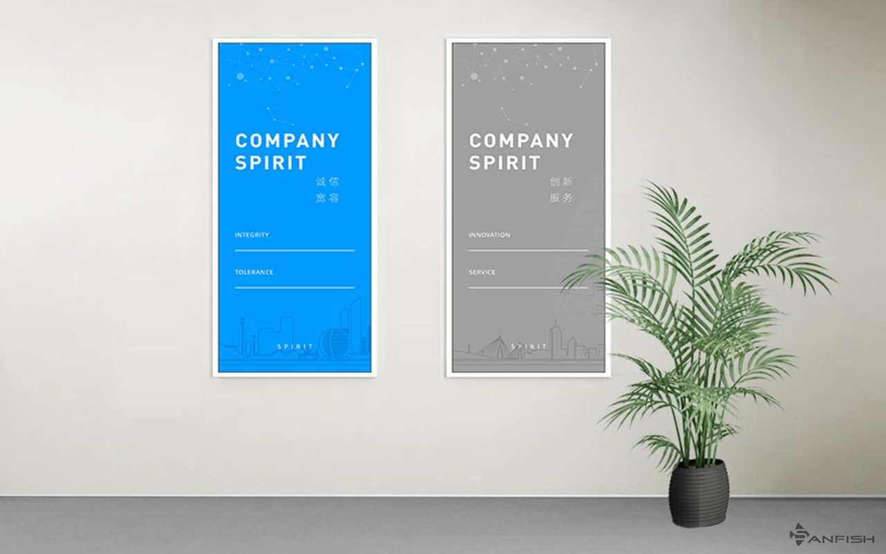 奇青智能辦公樓裝修后預留大面積白墻區域待規劃,客戶希望能結合行業特性,